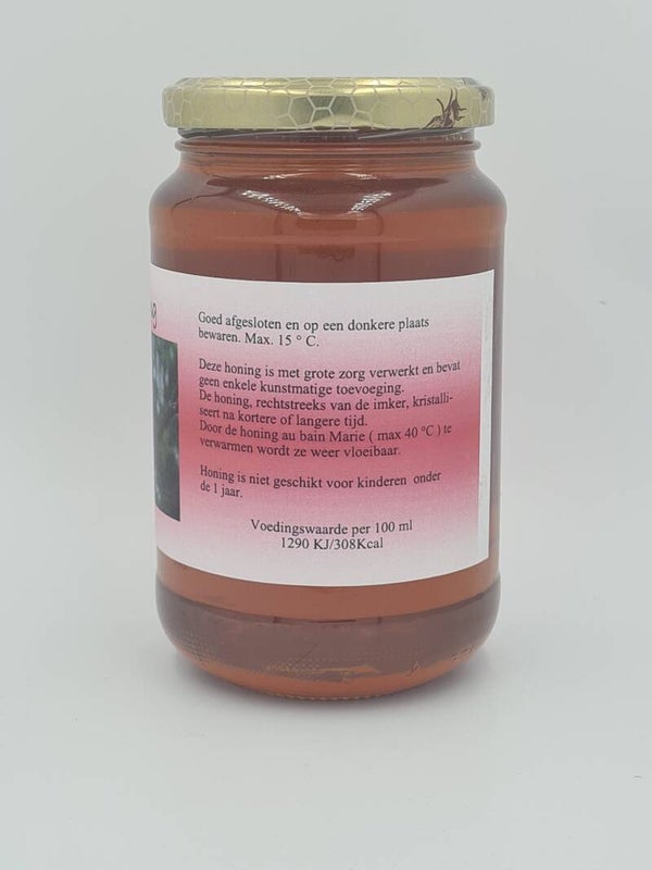 Voorjaarshoning is de milde, vloeibare eerste honing van het jaar, geoogst in mei van nectar uit vroege bloemen zoals wilg, fruitbloesem en paardenbloem, wat resulteert in een zachte, licht fruitige smaak, goudgele kleur, en een structuur die snel kristalliseert tot een zachte, romige massa. Deze veelzijdige, natuurlijke zoetstof is populair voor thee, op brood, of door yoghurt, en wordt gewaardeerd door zowel beginnende als ervaren honingliefhebbers